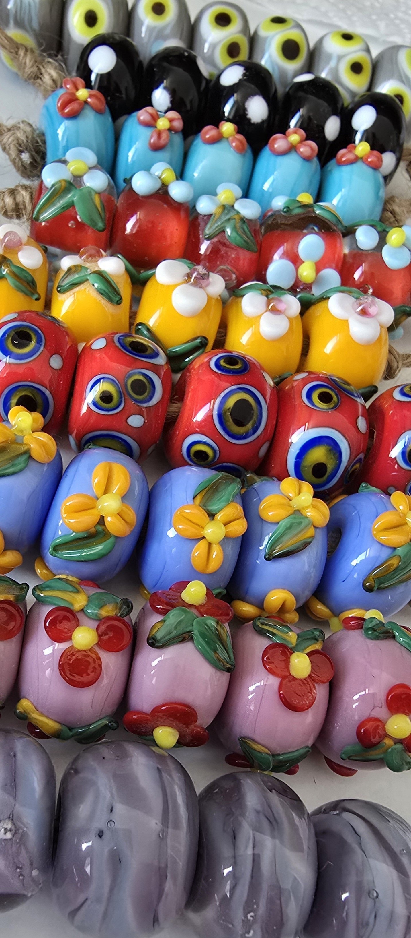 Toptan Murano Cam Çiçek Boncuk Karışık 50 li Paket